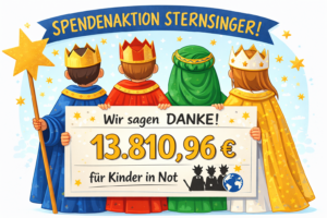 Die Aktion endete mit der Vorabendmesse am Samstag und dem Neujahresempfang im Pfarrzentrum. Die Kinder und Gruppenleitungen freuten sich über viele gesammelte Süßigkeiten. Wir konnten eine Spendensumme von ca. 13900€ erzielen, welche durch das „Tür-an-Tür-Laufen“, die festen Segensstationen bei Rewe und Marktkauf, sowie durch Kollekten in den Gottesdiensten gesammelt worden sind. Eine tolle Leistung jedes Einzelnen! Danke für die großzügigen Spenden! Dies ist ein wichtiger und großer Beitrag für die jährliche Spendenaktion. Die gesamte Pfarrei hat rund 34300€ gesammelt, eine riesige Geldsumme!